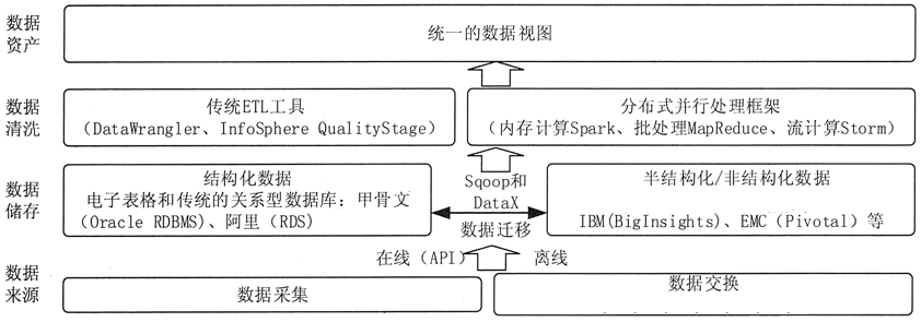 大数据预处理将数据划分为结构化数据和半结构化/非结构化数据,分别采用传统 ETL 工具和分布式并行处理框架来实现。总体架构如下图所示。
