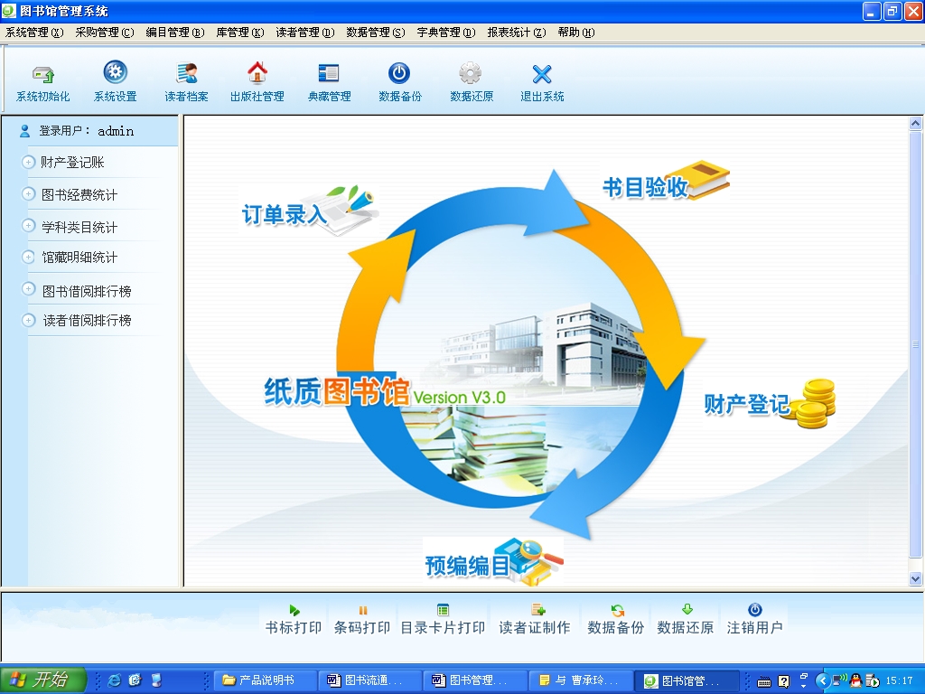 2.系统自带条码打印系统,对于一些内部刊物等没有编号或其它需要进行条码管理的学校可以直接调用条码打印程序用普通的喷墨打印机即可打印出条码。
