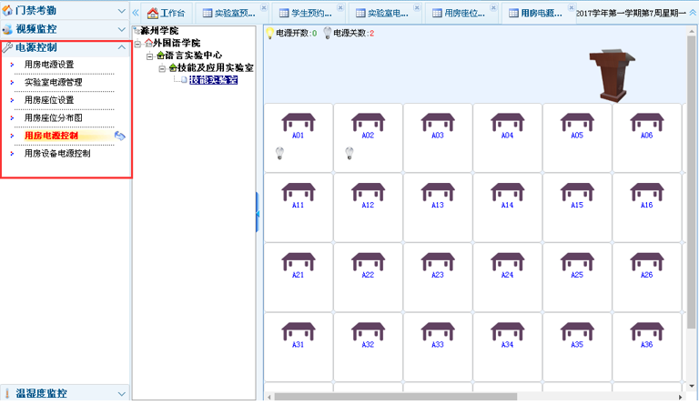 2、可对学生预约使用时间段的设备在学生刷卡通过身份认证后供电;
